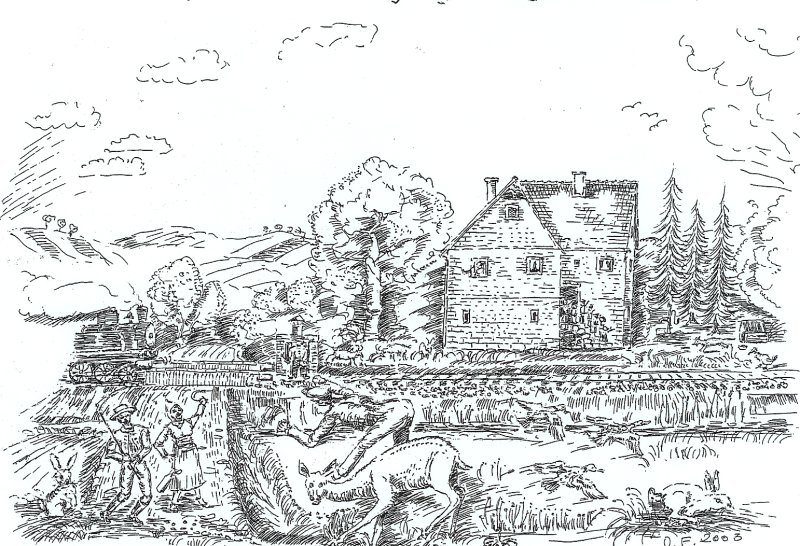 Am Bahnwärterhäuschen im „Dreibrunnen“ wurde uns der Bahnwärter gewahr und starrte das seltsame Gespann mit weit aufgerissenen Augen an, begleitet von einer zweistelligen Kinderzahl, die ihr Spiel unterbrach und ebenfalls nicht glauben konnten,