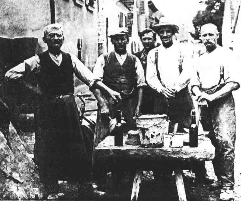 von links: Johann Antritter, Berthold Schuldt, Jakob Hertle (Schmied)